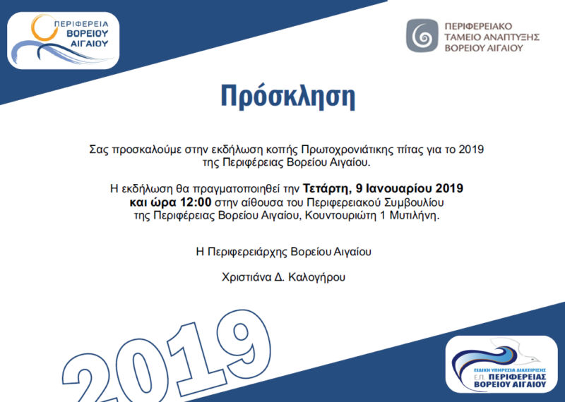 Κοπή Πρωτοχρονιάτικης πίτας της Περιφέρειας Βορείου Αιγαίου