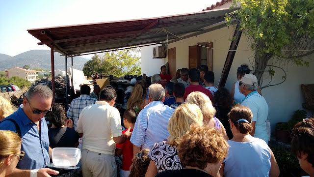 Το πρωί, μετά τη Θεία Λειτουργία για τα εννιάμερα της Παναγίας, διανεμήθηκε στον κόσμο η "γιορτή", το έδεσμα που μοιράζεται στα πανηγύρια της Σάμου - και όπως ήταν αναμενόμενο - εξαφανίστηκε σε ελάχιστα λεπτά!