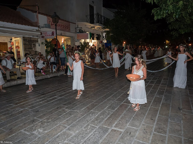 Δείτε το βίντεο του Πέτρου Γλεούδη από την λήξη της τελετής. Πλοιάρια με κοπέλες με αρχαιοελληνικές ενδυμασίες και αναμμένες δάδες κάνουν τον γύρο του λιμανιού του Πυθαγορείου.
