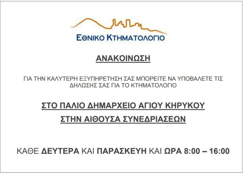 Δήμος Ικαρίας : Ανακοίνωση για κινητή μονάδα Κτηματολογίου Αγίου Κηρύκου