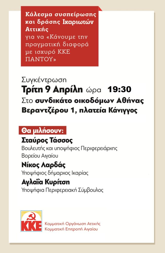 The post Λαϊκή Συσπείρωση: Κάλεσμα των Ικαριωτών στην Αθήνα appeared first on Ικαριακή Ραδιοφωνία.